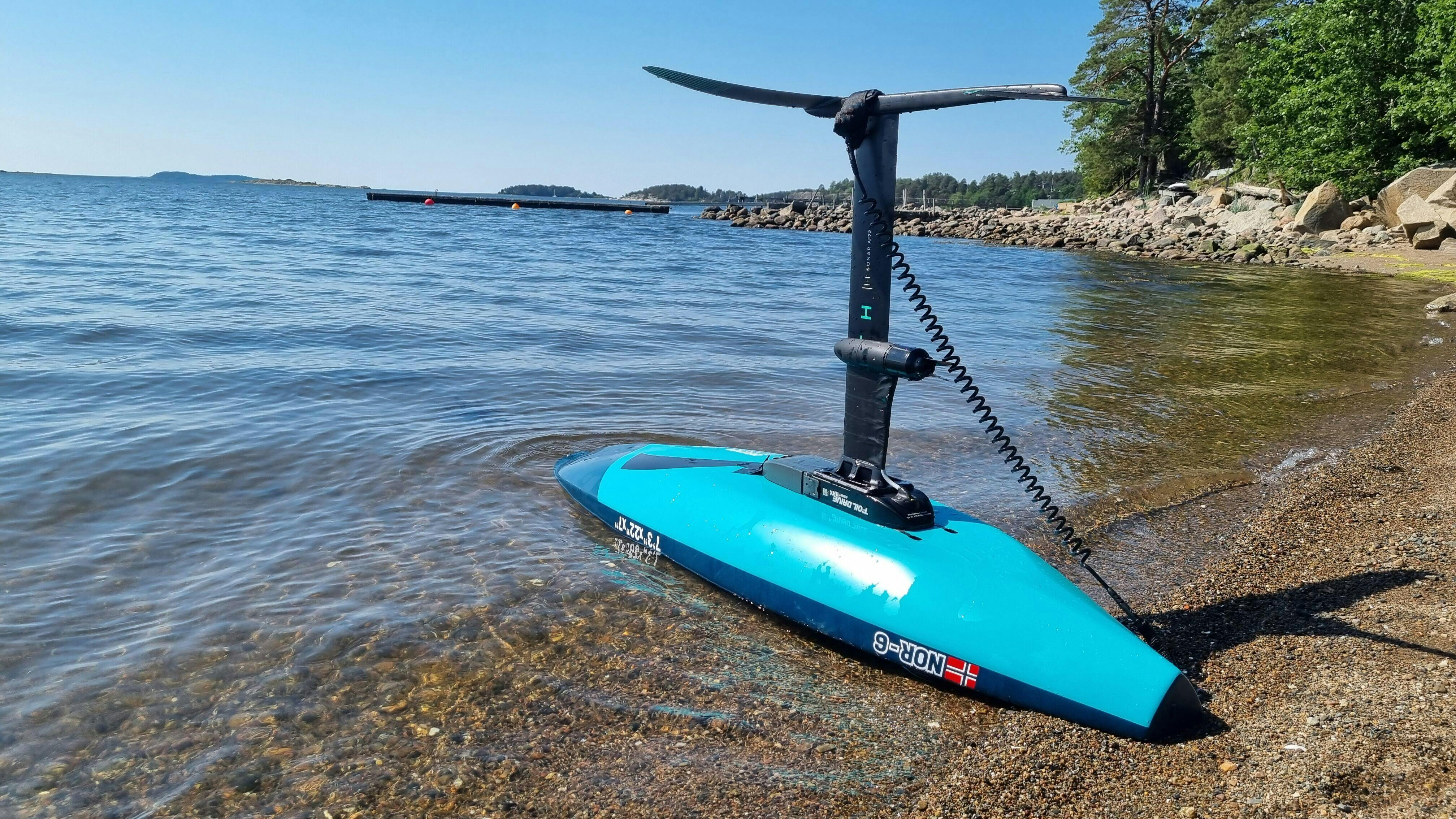Til foildrive har jeg aldri opplevd problem med fjernkontrollen. Formen gir rask akselerasjon noe som sparer energi i oppstarten. Volumet og formen i tuppen redder deg ofte inn ved en stall og den hjelper deg opp igjen i grumsete sjø. Har bare brukt brettet en gang med Winge og mener de samme argumentene gjelder her. Jeg tror lengden er perfekt i forhold til tette vindbølger.